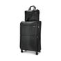 This all-inclusive set features a 80cm checked softside suitcase alongside a sleek laptop bag, meticulously designed for the business traveller. The suitcase is equipped with an expansion option to accommodate extra belongings, secure with a built-in TSA lock for your peace of mind. It comes with a telescopic handle for effortless navigation and a sturdy top handle for easy lifting. Organisational needs are met with two external zippered pockets, an interior zippered mesh pocket, shoe compartments, and an ID slot on the back for quick identification. It also features robust rubber corner guards to protect against wear and tear.